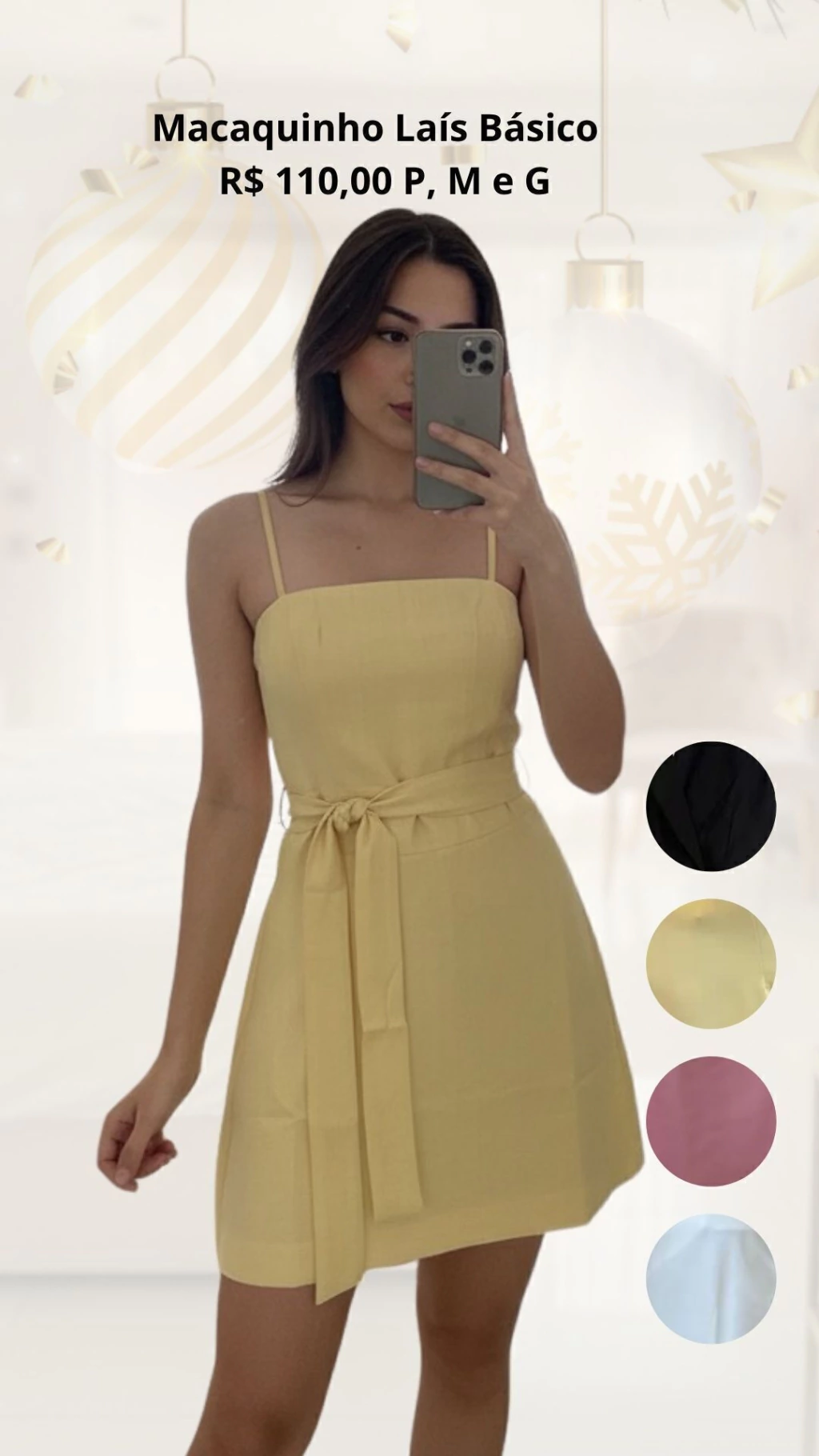Macaquinho básico com alças finas, modelagem reta e faixa para amarrar na cintura. Leve, confortável e versátil.