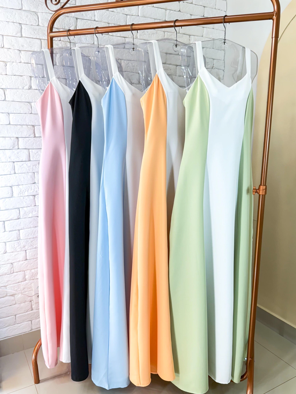 Elegante e moderno, este vestido longo traz um design bicolor com recortes estratégicos nas laterais, criando uma silhueta alongada e sofisticada. Com alças médias que oferecem sustentação e decote em formato de coração, o modelo é ideal para compor um visual clássico e versátil. Feito em tecido leve e confortável, é a peça perfeita para diversas ocasiões, do casual ao formal. Disponível em cores vibrantes e neutras para atender a todos os estilos.